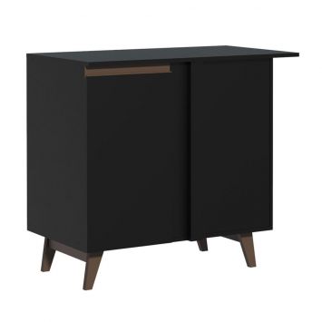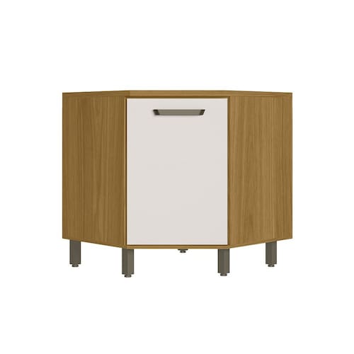 Balcão De Canto Armário Baixo Oblíquo 1 Porta 1 Prateleira Cozinha Multiuso Marrom Madeira Preto