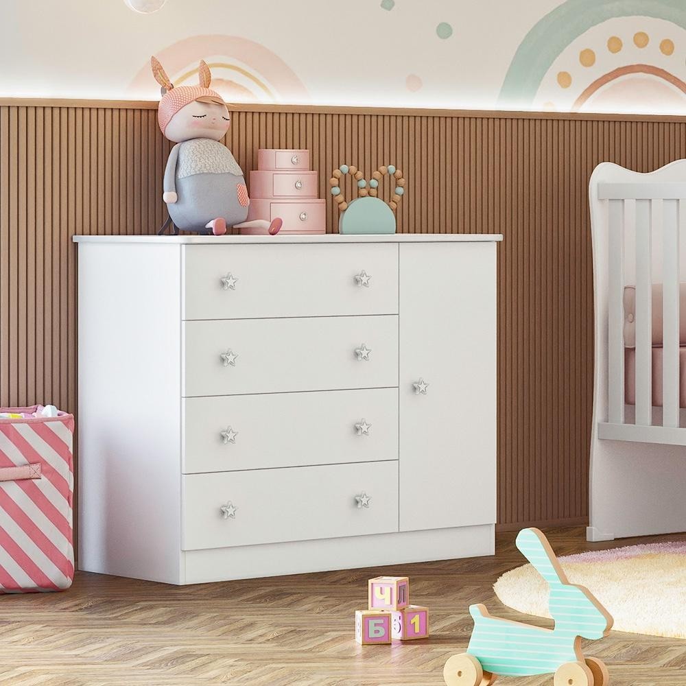 Cômoda Infantil Sapateira 4 Gavetas 1 Porta Bonny Móveis Reller Branco