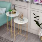 Kit Mesa Lateral Redonda para Sala de Estar Lírio Off White Base Dourada