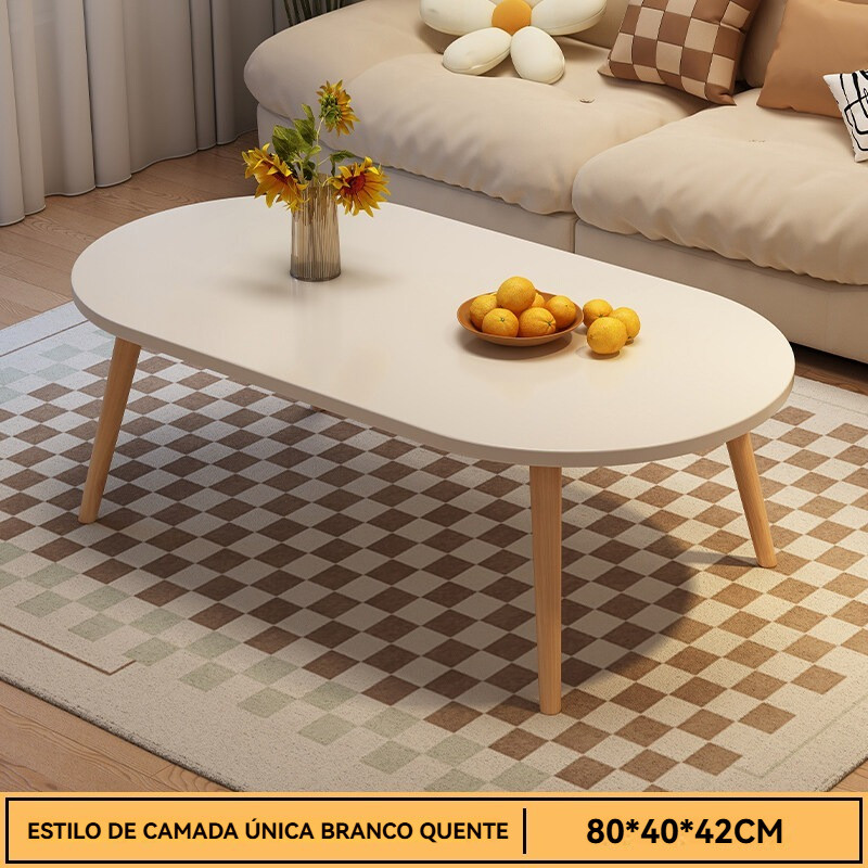 Mesa de Centro Sala de Estar Oval 4 Pés Moderna Baixa Decoração MDF Branco Marrom Madeira