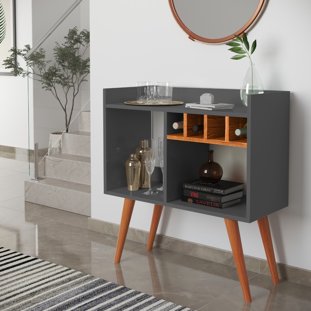 Aparador Bar Rubi Retro Com Adega Buffet Cantinho Café Pés Palito Industrial Hall Entrada Escritório Preto
