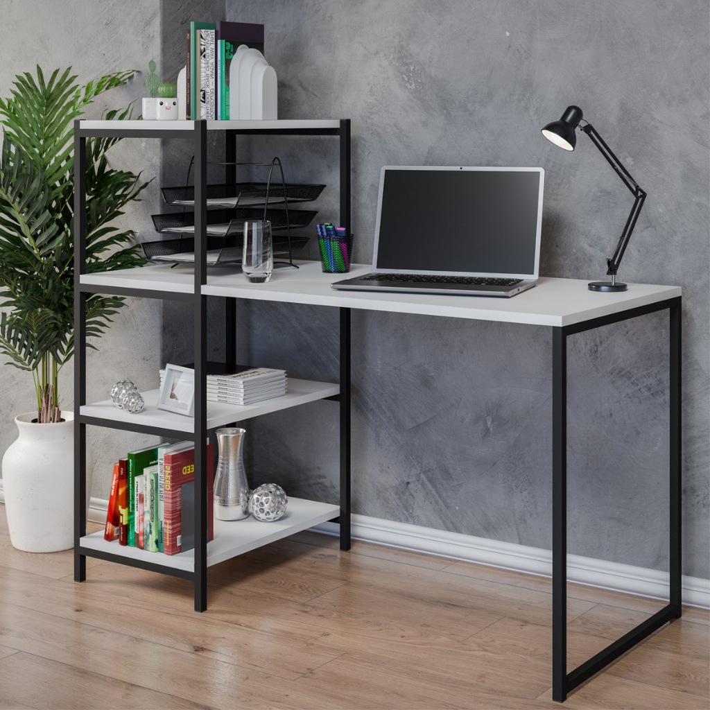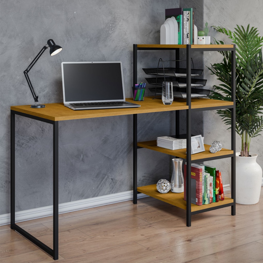 Escrivaninha Industrial Mesa Home Office Com Prateleiras Atlanta - LH Móveis