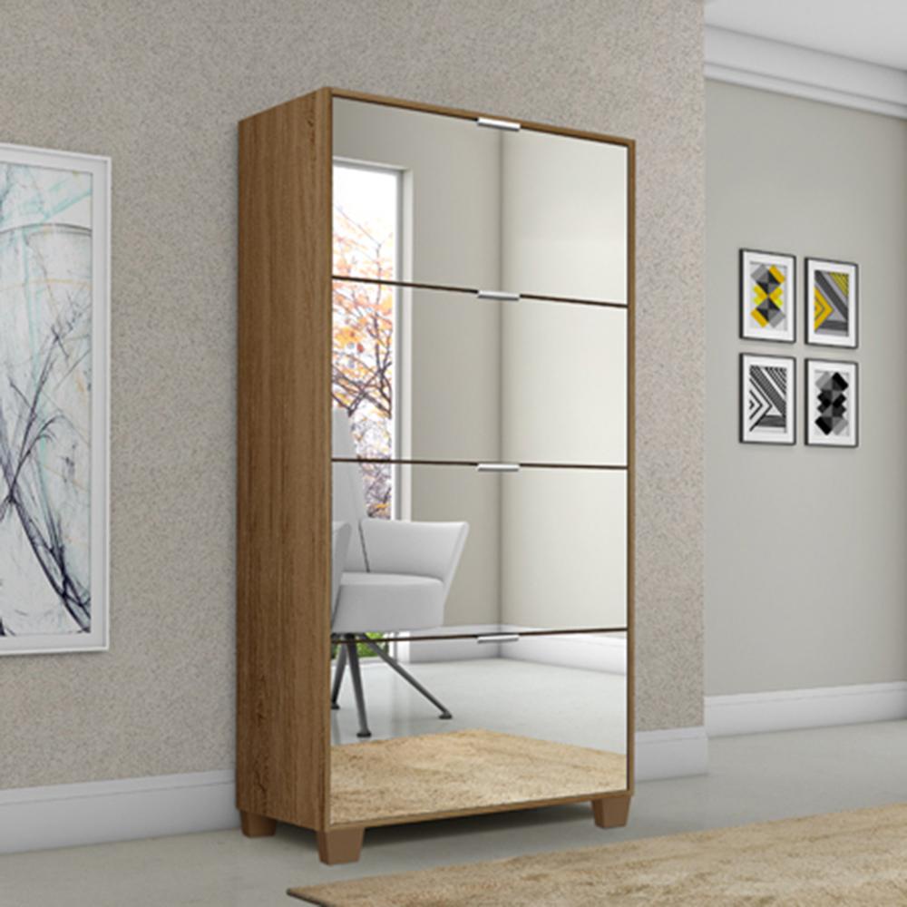 Sapateira Pequim Com Espelho 4 Portas Com Pés de Madeira - Ferrara Madeirado Rede Móveis
