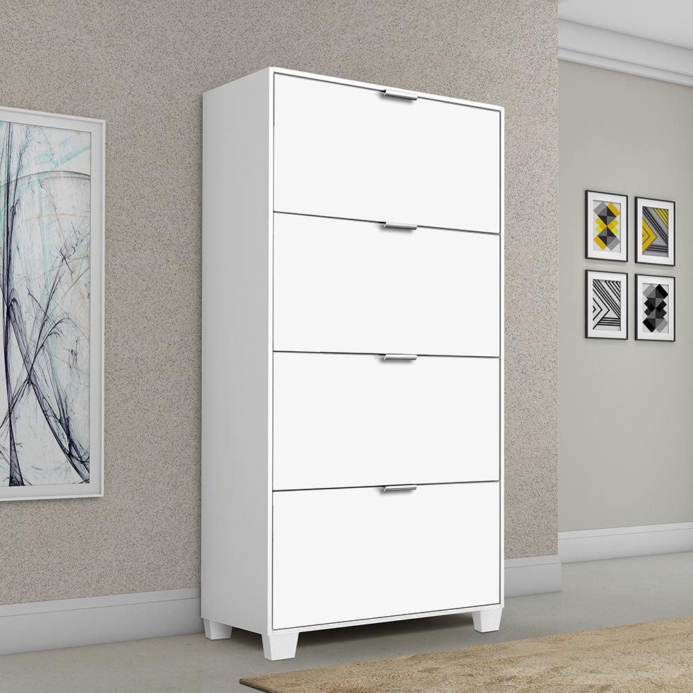 Sapateira Horizontal Hall de Entrada 4 Portas Mikka Branco 24 Pares