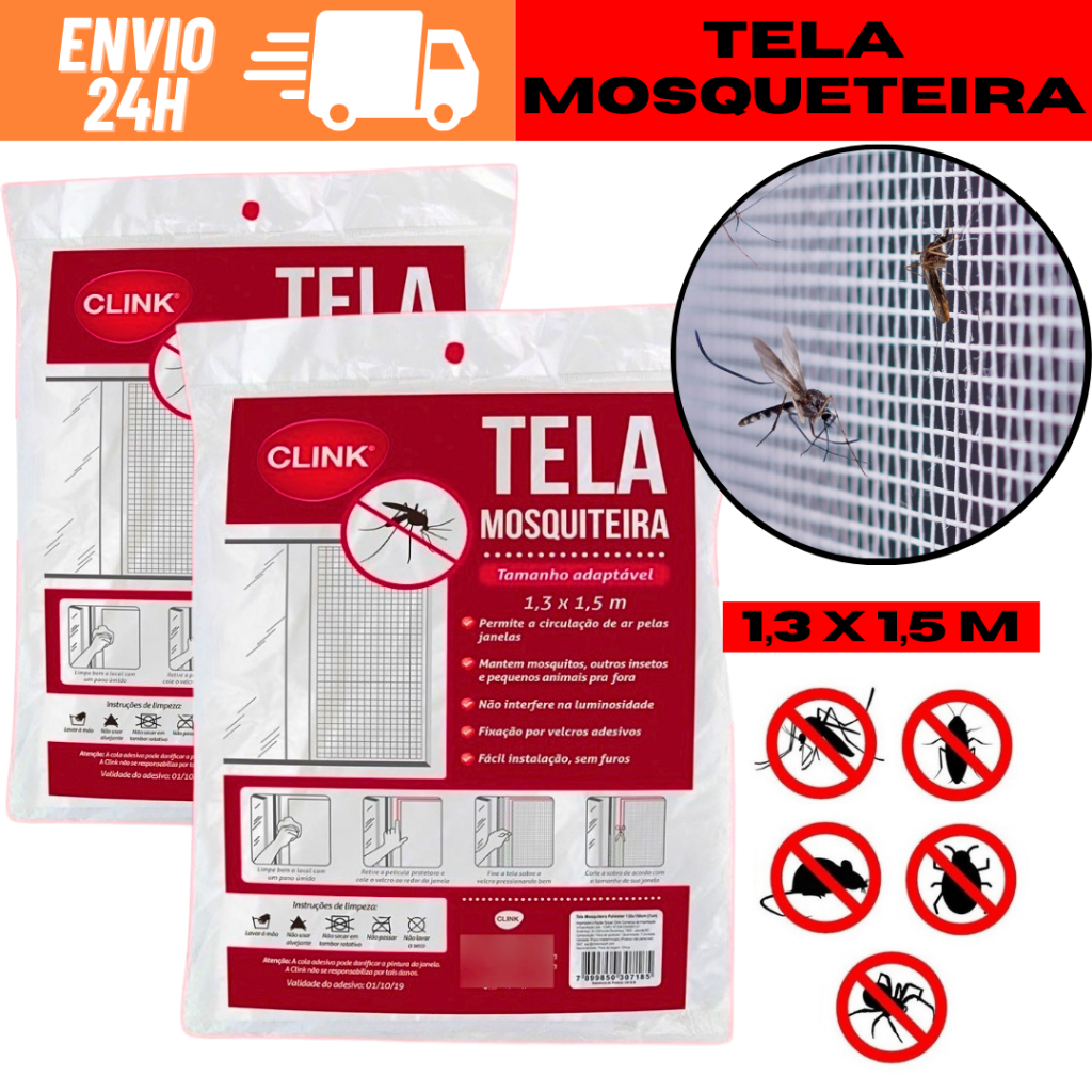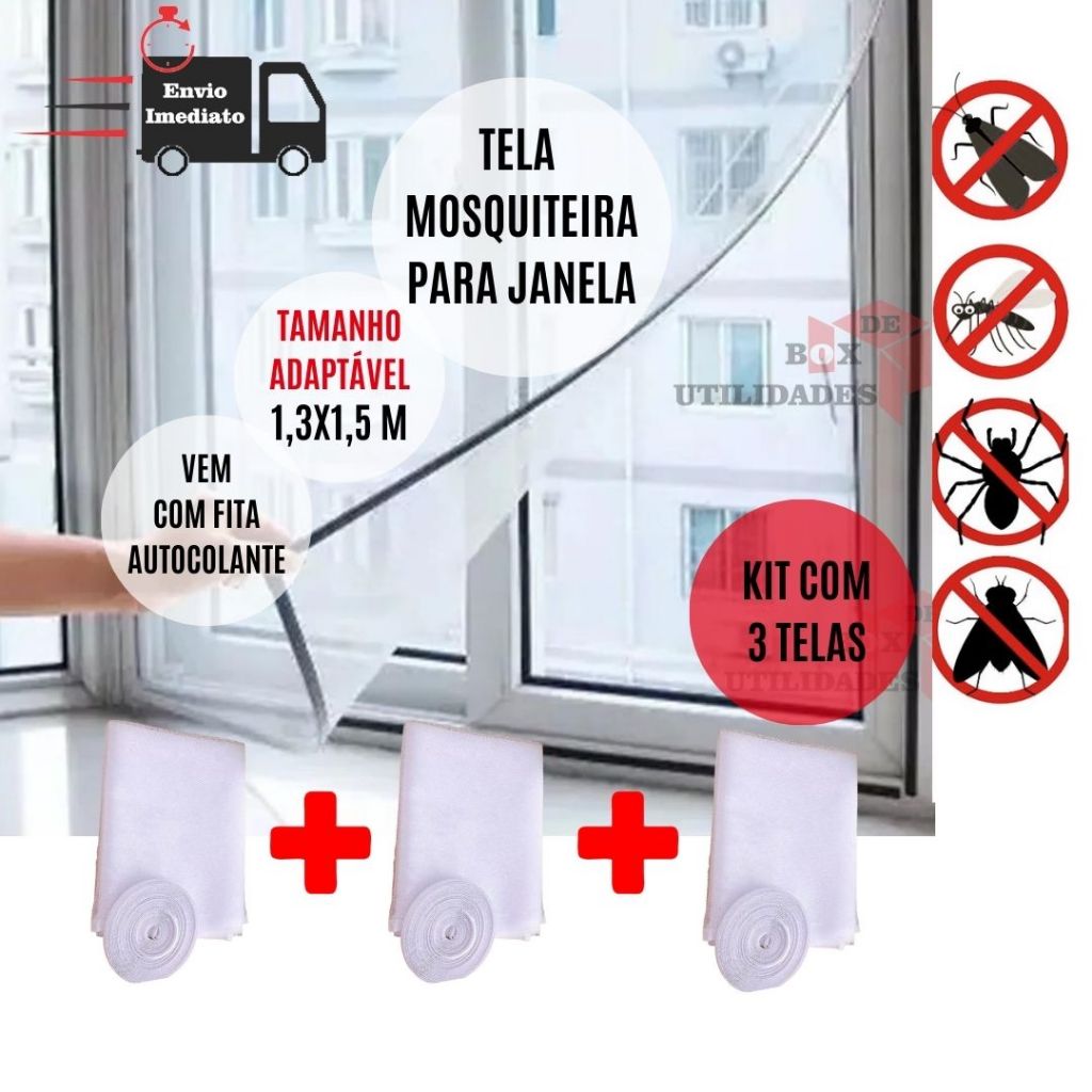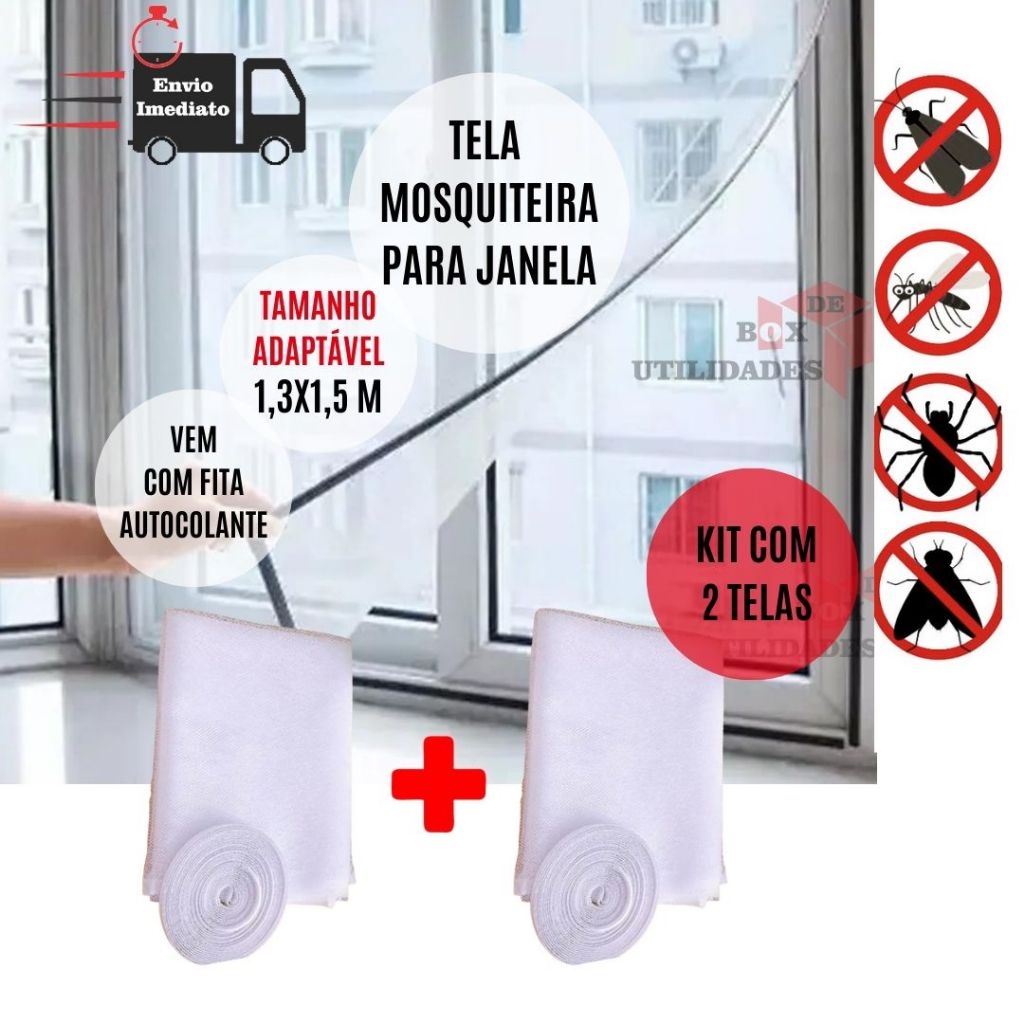 KIT Tela Mosqueteira De Janela 1,5 x 1,3 Com Velcro Autocolante Anti Inseto Pernilongo Muriçoca Dengue Ajustável Removível Fácil Instalação Envio Rápido