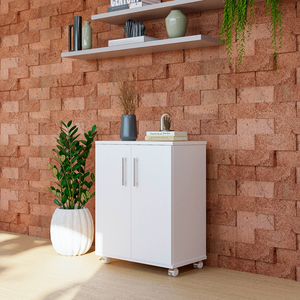 Armário Multiuso 2 Portas com Chave e 4 Prateleiras Dallas:Branco