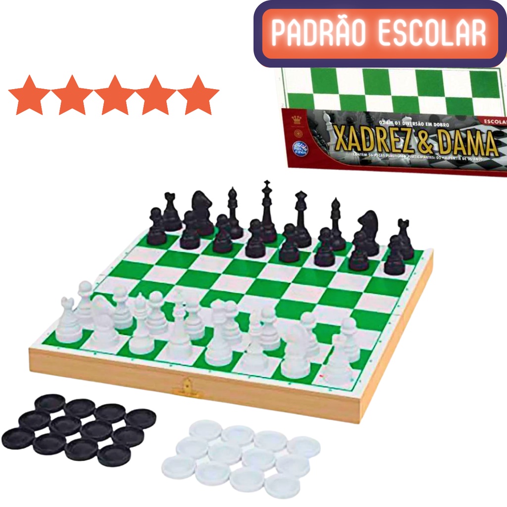 Jogo Xadrez Dama Escolar Oficial Tabuleiro Madeira Dobrável de mesa 2 em 1 Combo 2x1
