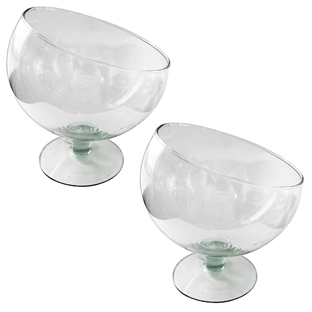 Conjunto Kit 2 Taças Boca Torta Pequena Ø11x13cm Vidro Decorativo Transparente Enfeite Sala Cozinha Centro De Mesa Festas Casamentos Buffet Doces Frutas Sobremesa