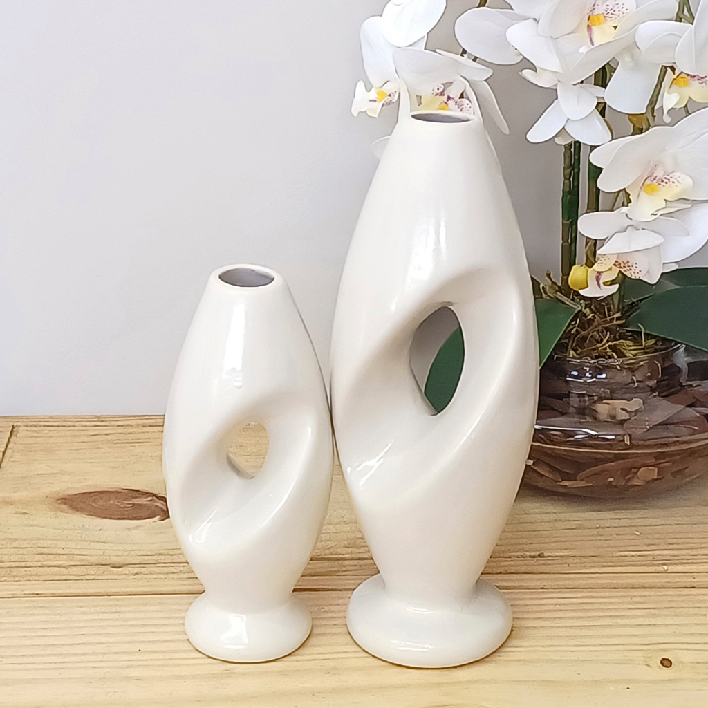 Kit 2 Peças Vaso Grande Decorativo Formato Espiral para Sala Conjunto Objeto Decorativo Cerâmica Decoração Enfeite Rack vasos centro de mesa e Dupla de vasos