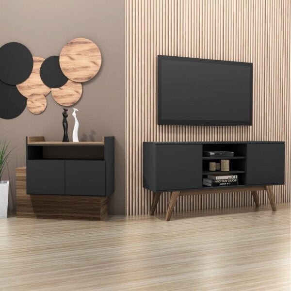 Conjunto para Sala de Estar Rack e Aparador 2 Portas 1 Prateleira Preto