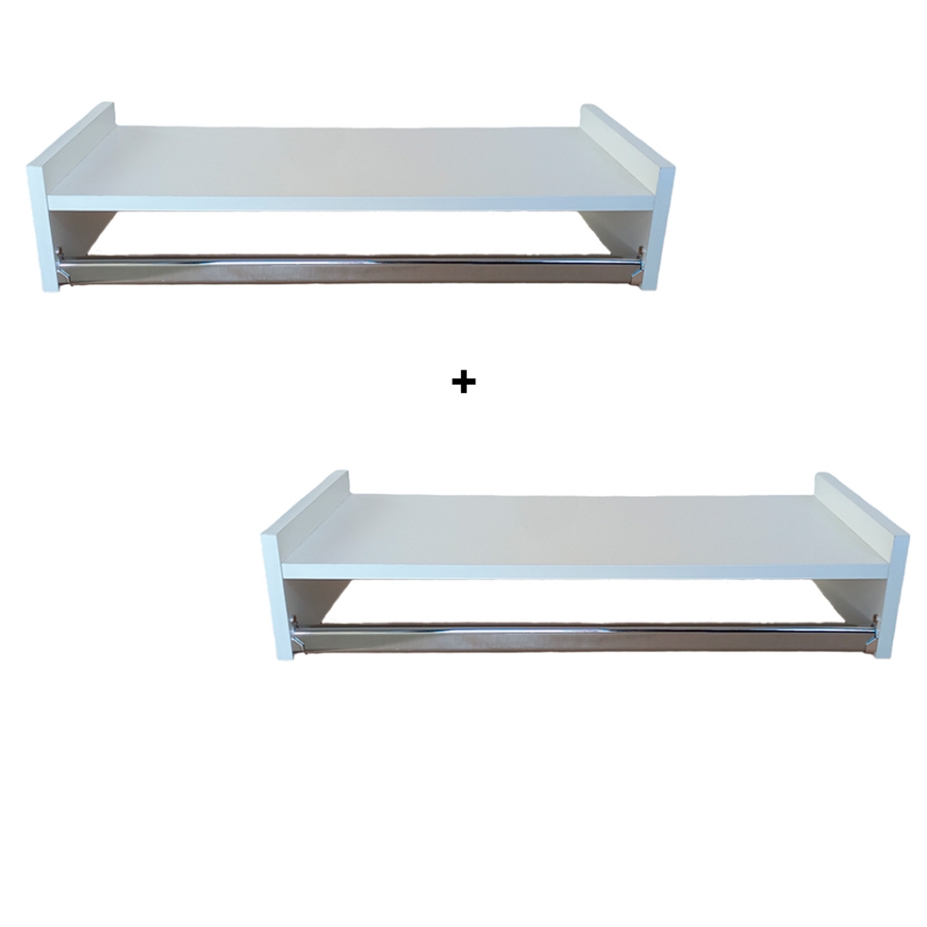 Kit Cabideiros de Roupas Organizador Parede Cabideiro Arara Suspensa Em MDF Branco Prateleira Multiuso Lavanderia Quarto 50 cm
