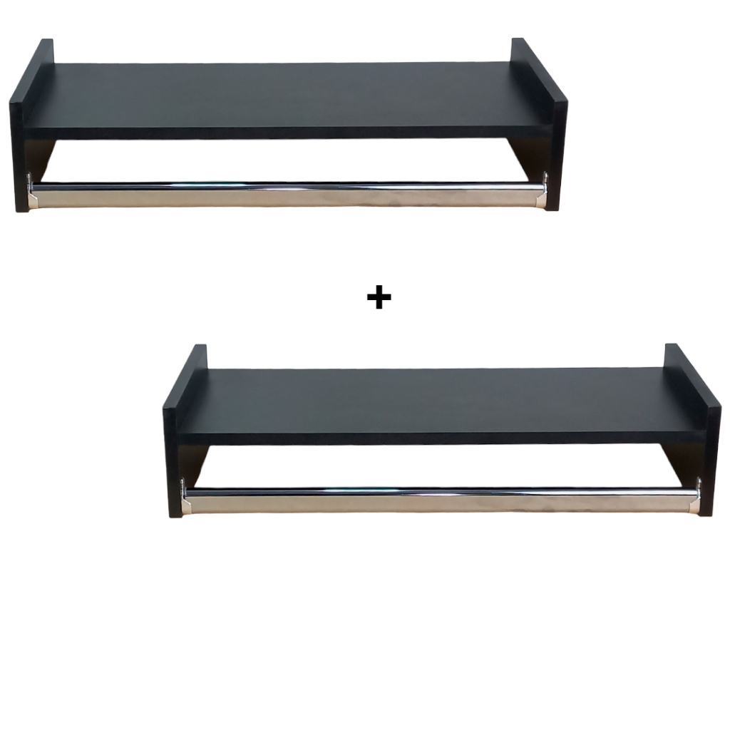 Kit 2 Cabideiro de Parede Closet Arara de Roupas Quarto Preto/Branco 60cm