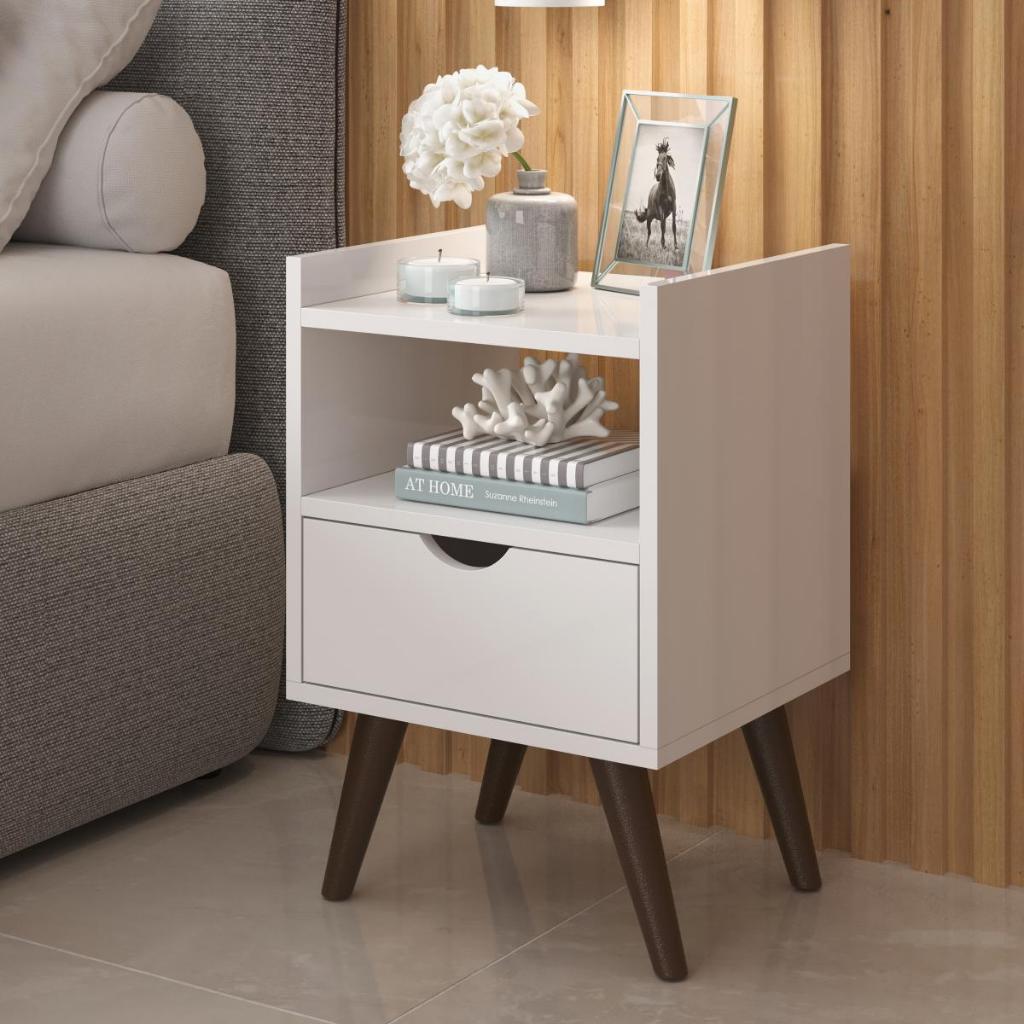Mesa De Cabeceira Quarto Retrô Pés Palito Com Nicho e 1 Gaveta - Alice - Branco - Lojas GB