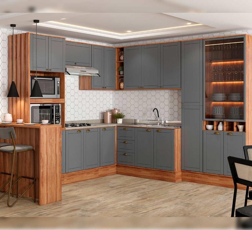 Cozinha Lançamento Mdf Estilo Americana Provençal Modulável Cor:titanio