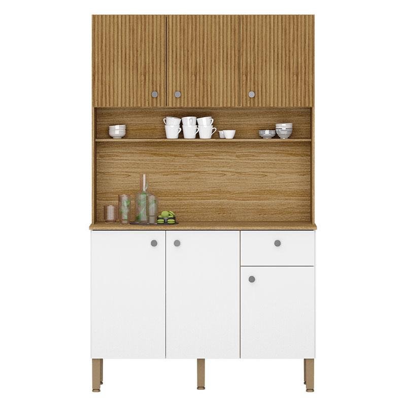 Cozinha Compacta Kit's Paraná Florence com 6 Portas, 1 Gaveta e 2 Prateleiras - 121,5cm de largura - Patina Ripado Freijo
