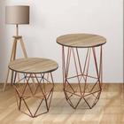 Kit Mesa de Centro e Lateral de Canto Industrial Lizie Sala Ferro Bronze Tampo MDF Redondo Rústico - Ahazzo Móveis
