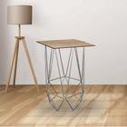 Mesa Lateral de Canto Industrial Lizie Aramado Ferro Cinza Tampo MDF Quadrado Imbuia - Ahazzo Móveis