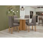 Conjunto Mesa de Jantar Celebrare 1,20 com vidro e 4 cadeiras Apogeu Tecido Linho Rinzai Bege Amendoa Clean/off White