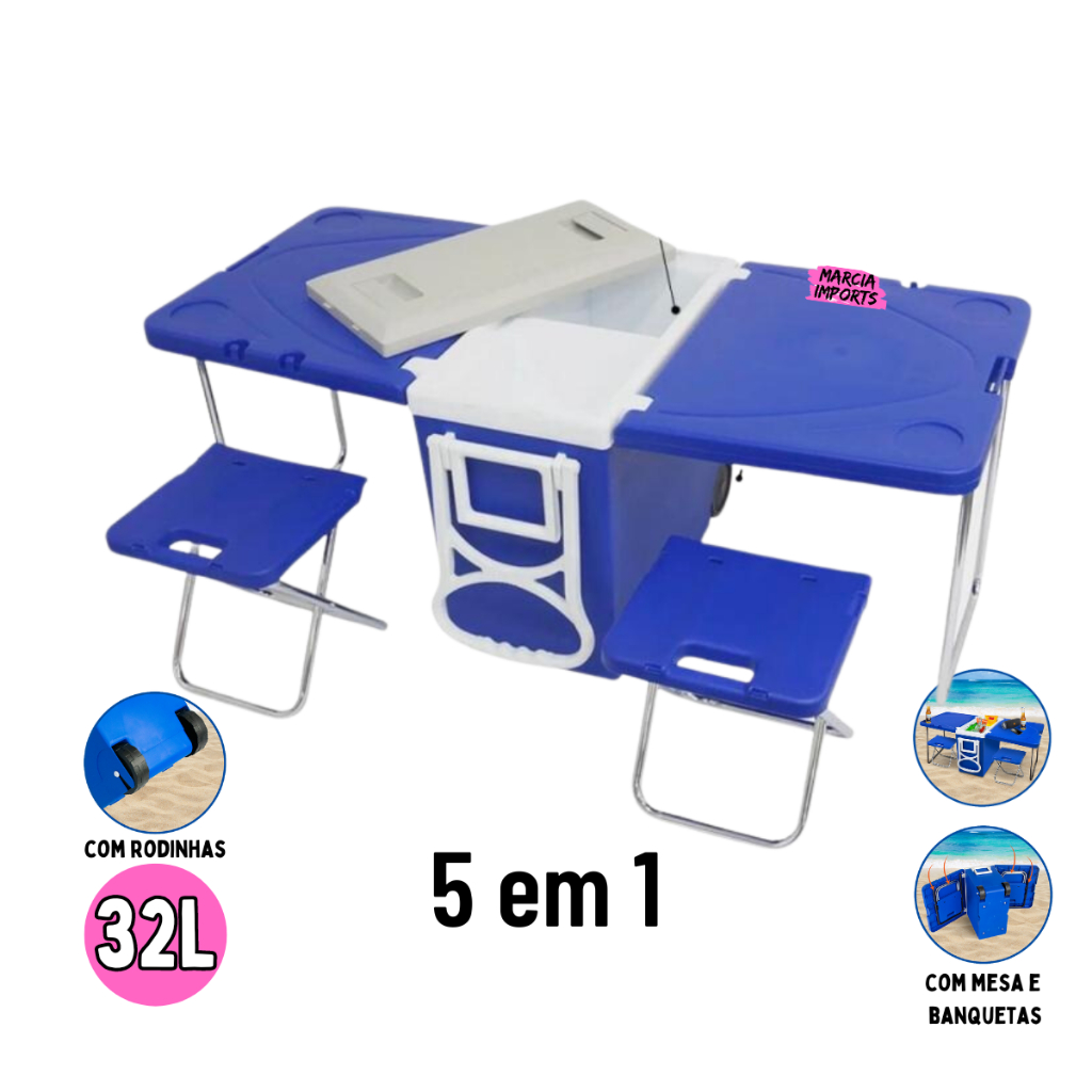 Caixa Térmica 32 Lts 5 Em 1 ou 3 em 1 Com Mesa E Cadeira Praia Camping
