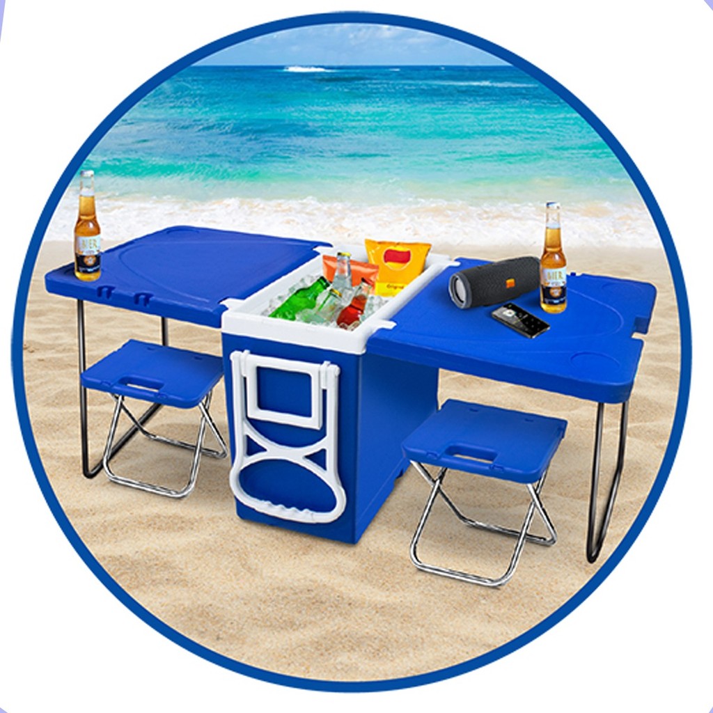Super Caixa Térmica Cooler 32 Litros Multifuncional 3 Em 1 Com Mesa e Rodinhas