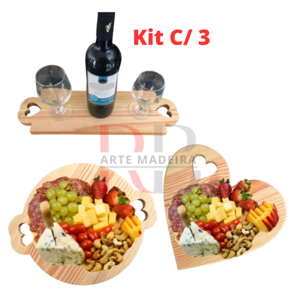 Kit Tábua De Frios Petisqueira Aperitivo Porta Vinho Queijo Taça Combo Decoração Mesa Posta Coração Redonda Retangular