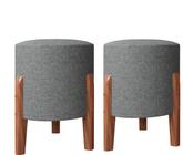 Kit 2 Puff Estofado Redondo com Pés em Madeira Banqueta Elegante