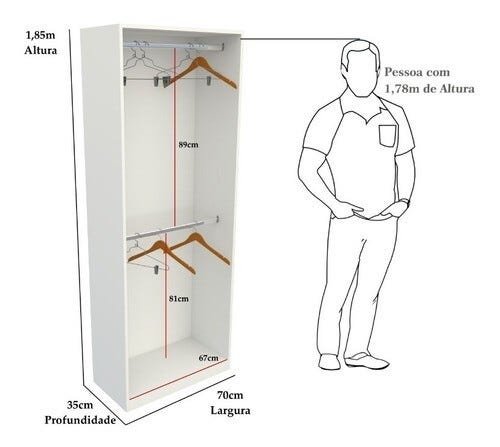 Armário Cabideiro Duplo M13 100% Mdf Arara Prateleira Closet - Branco