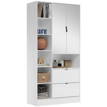 Armário Multiuso 2 Portas com Espelho 8 Prateleiras 2 Gavetas Demobile Joy