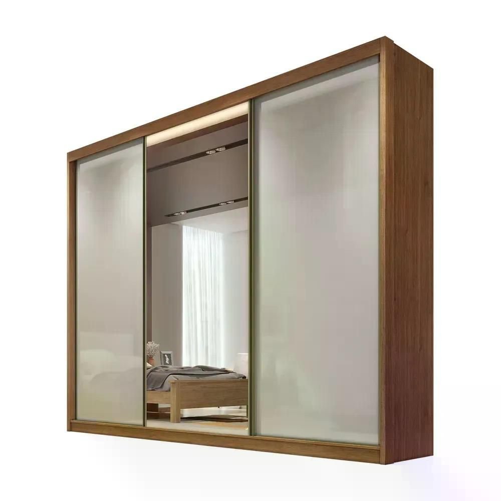 Guarda Roupa 3 Portas de Correr (1 C/ Espelho) e 6 Gavetas Arezzo/medelim Cumaru/fendi - Novo