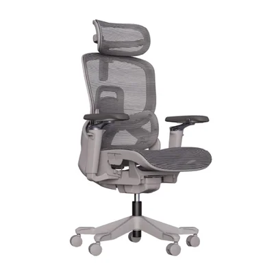 Cadeira De Escritório Ergonomica Premium Aniara Com Revestimento Em Mesh, Braços 5d, Apoio Lombar E Cabeça, Rodas Anti Risco - Cinza