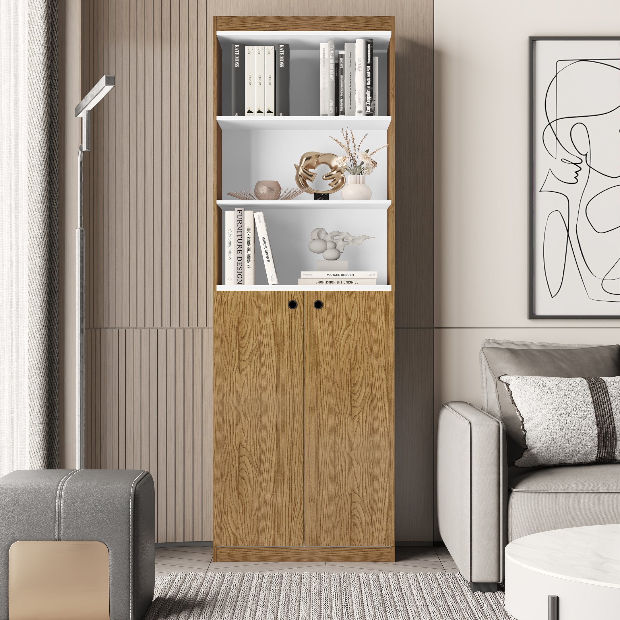 Estante Livreiro Organizador Multiuso com 2 portas e 5 prateleiras Nature/Branco Gold Luxo