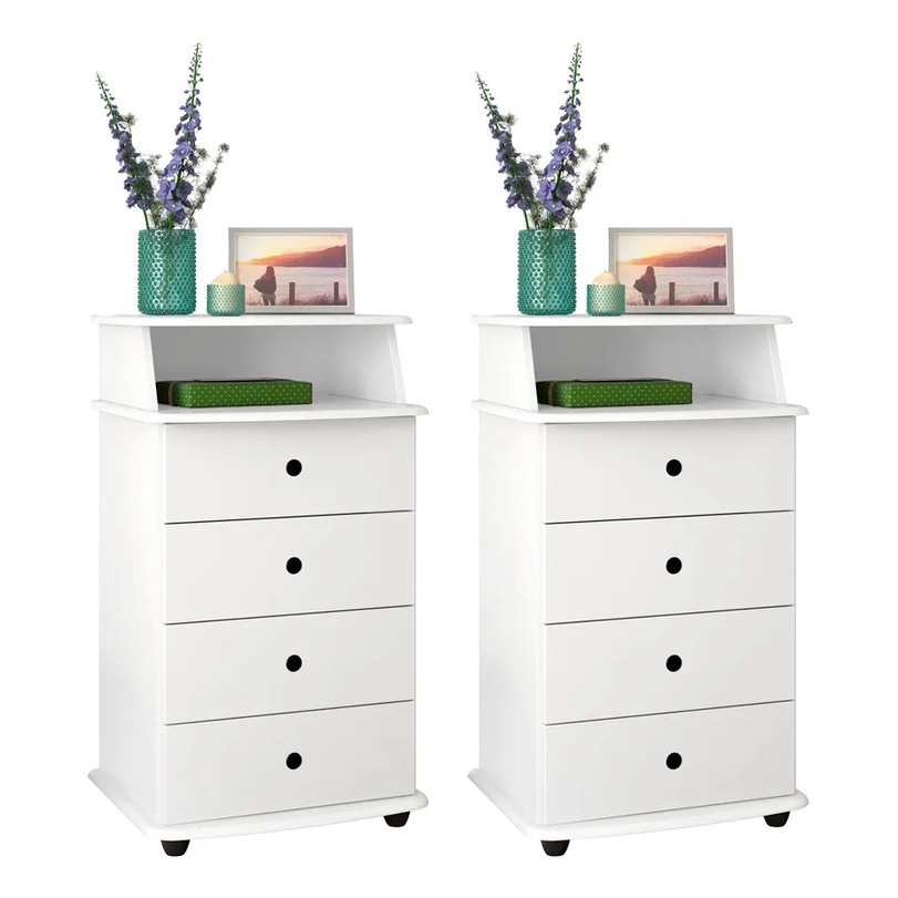 Kit 2 Mesas de Cabeceira Mesinhas Quarto Com Nicho e Gavetas Retrô Dream Plus - Branco - Lojas RPM