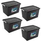Kit 4 Caixas Organizadoras C/ Tampa e Trava 56 Litros Preta