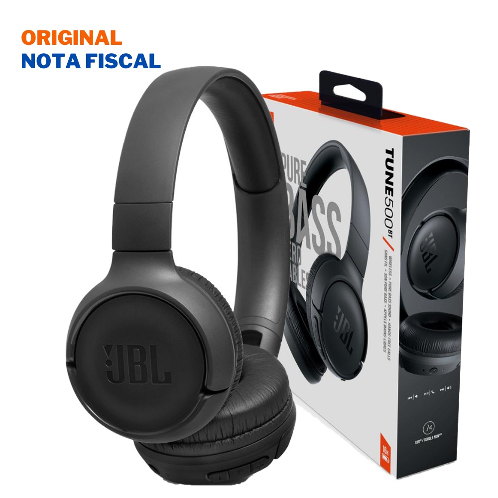 Fone de Ouvido JBL Tune 500 Bluetooth Preto Pure Bass Sem fio Com Microfone e Controle T500BT