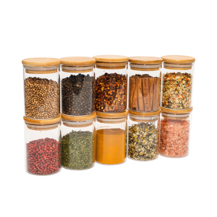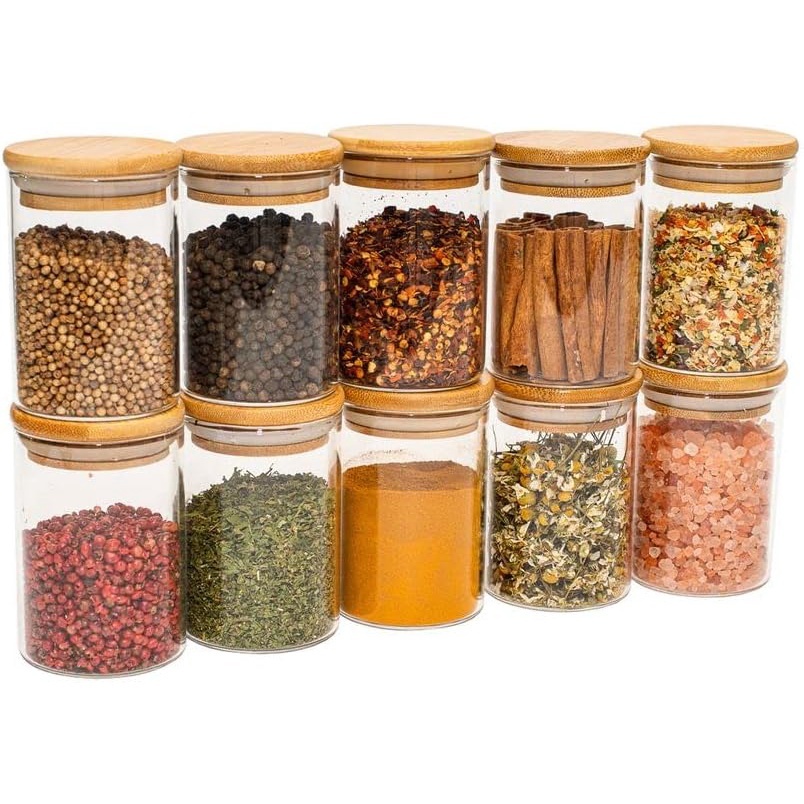 Kit 10 Potes De Vidro Hermético Para Tempero Com Tampa De Bambu 200ml - Alimentos - Mantimentos