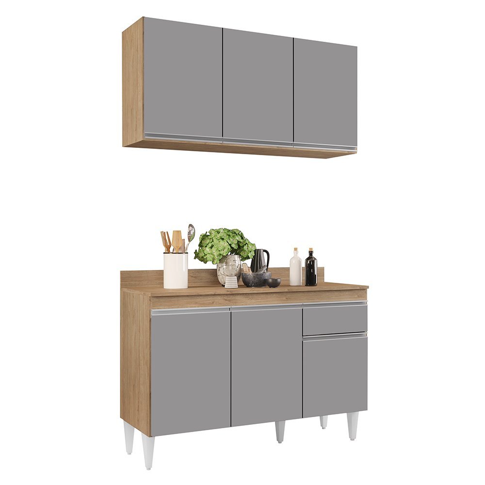 Kit Madesa Reims 120 cm com Armário Aéreo e Balcão Gabinete de Pia - Branco