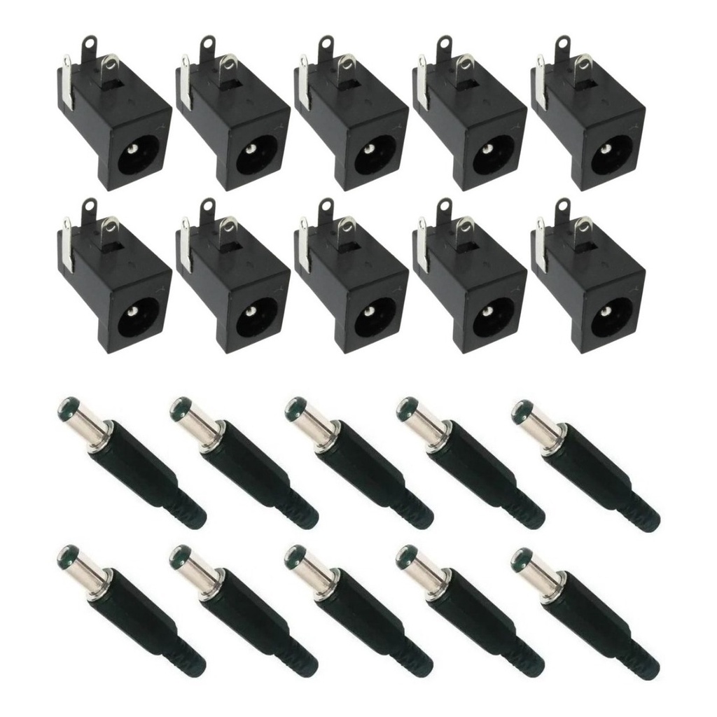 Kit Conectores Jack J4 Femea DC-005 PCI e Plug Conector P4 Macho 2.1X5.5MM Fio - 20 Peças