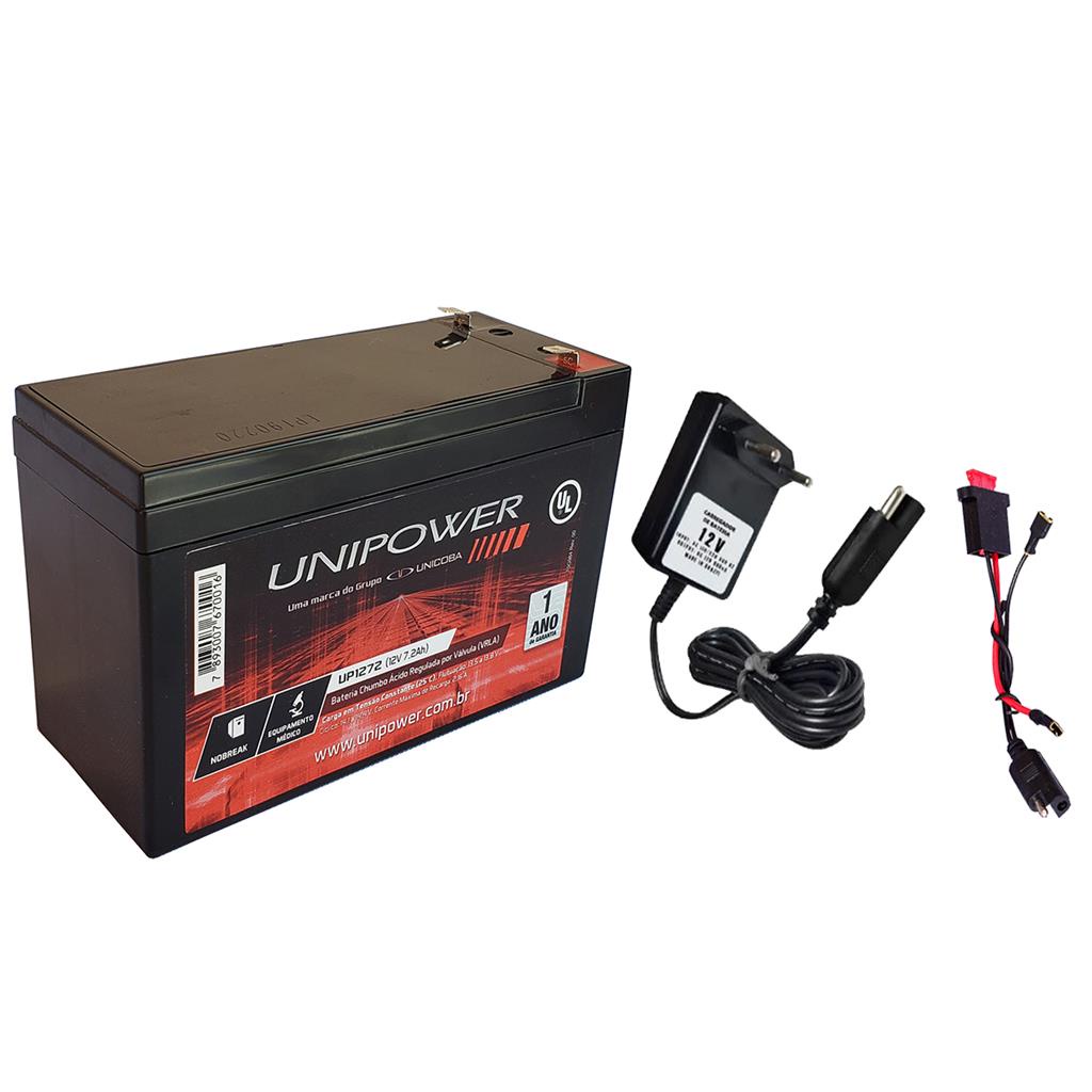 Kit Bateria Selada 12v 7,2ah Unipower + Carregador + Chicote