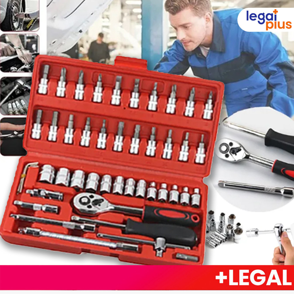 Jogo De Soquete 46 Peças Chave Catraca Reversível Mutifuncional com Maleta