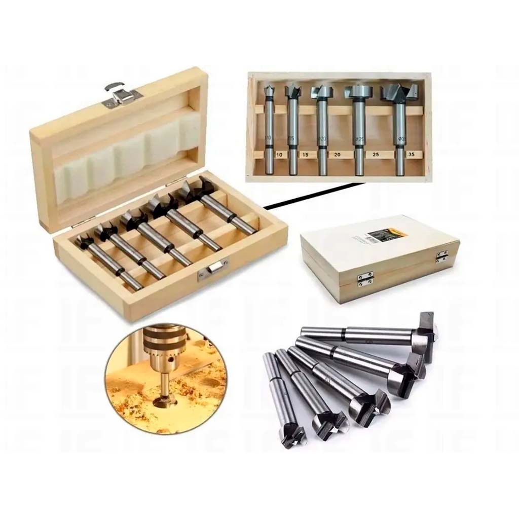 Kit Jogo 5 Fresas Brocas Forstner 10-35mm Madeira Dobradiça