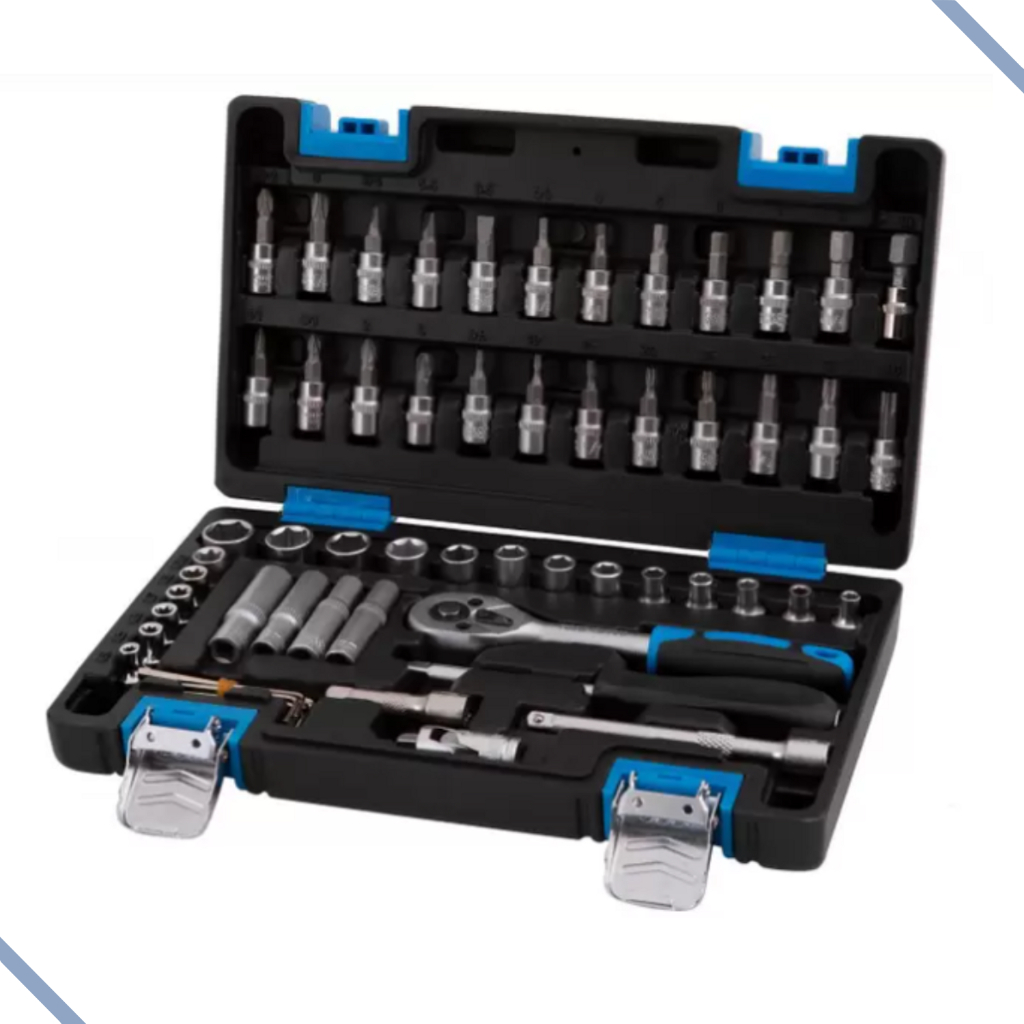Kit Jogo De Soquete Catraca 53 Peças 1/4 Catraca Chave Allen Com Maleta Cromo Vanádio