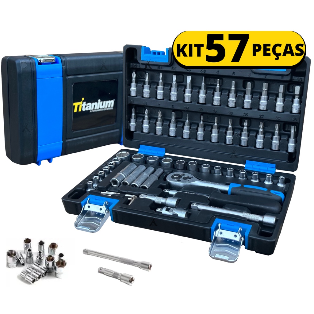 Jogo Kit Ferramenta De Soquete 57 Peças 1/4 Catraca Maleta Titanium