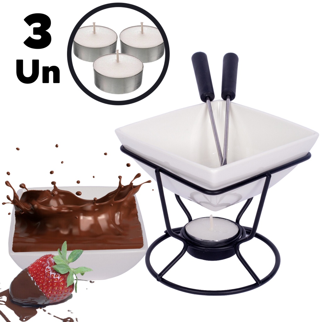Kit Conjunto Fondue 5 Peças Panela Cerâmica Antiaderente Doce Salgado