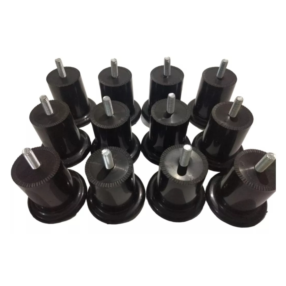 Kit 12 pés pezinhos de plastico 6cm preto para móveis cama sofá poltronas cozinha armário mesa