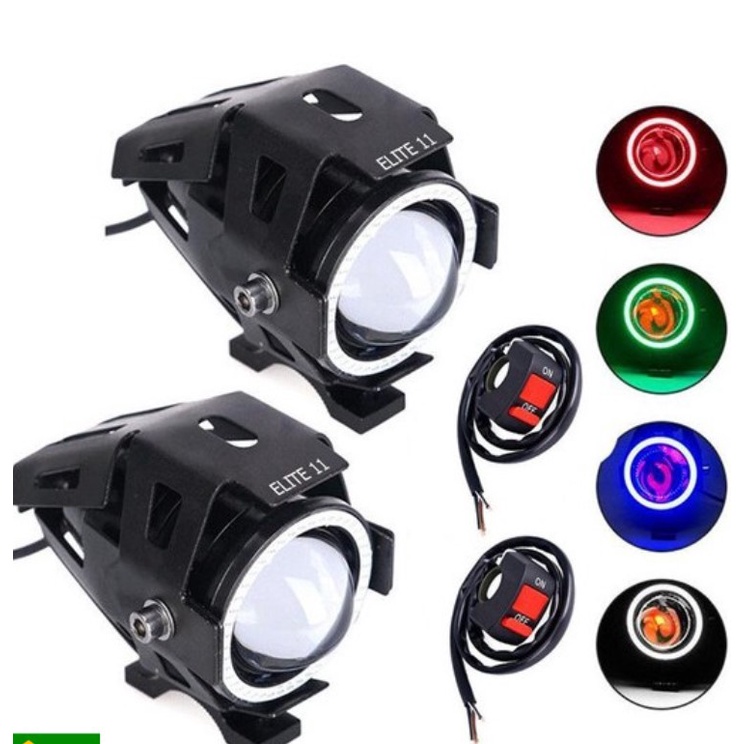 Par Farol Milha Led Moto U7 Com Angel Eyes Wh Xenon Nevoeiro