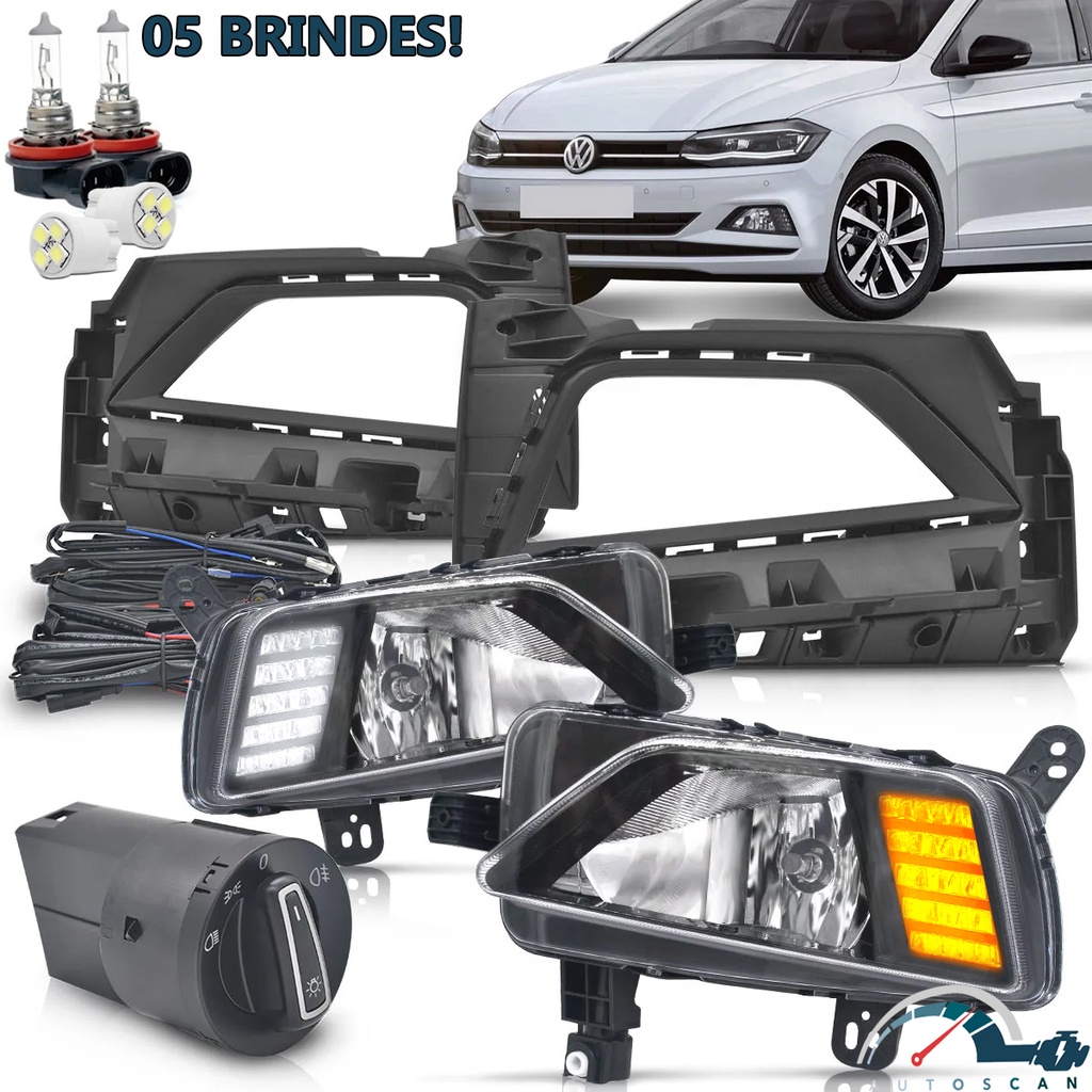 Kit Farol de Milha Neblina Vw Virtus e Novo Polo 2018 2019 2020 2021 2022