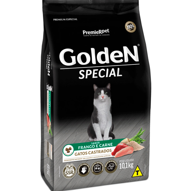 Ração Golden Special para Gatos Castrados Sabor Frango e Carne - 10,1kg Premier Pet