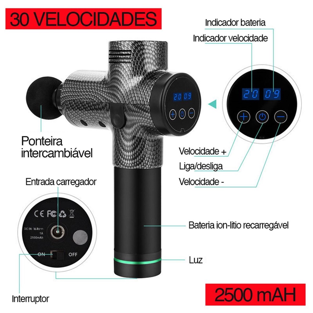 Massageador elétrico portátil Muscular Pistola Profissional 30 Velocidades GT966 Lorben