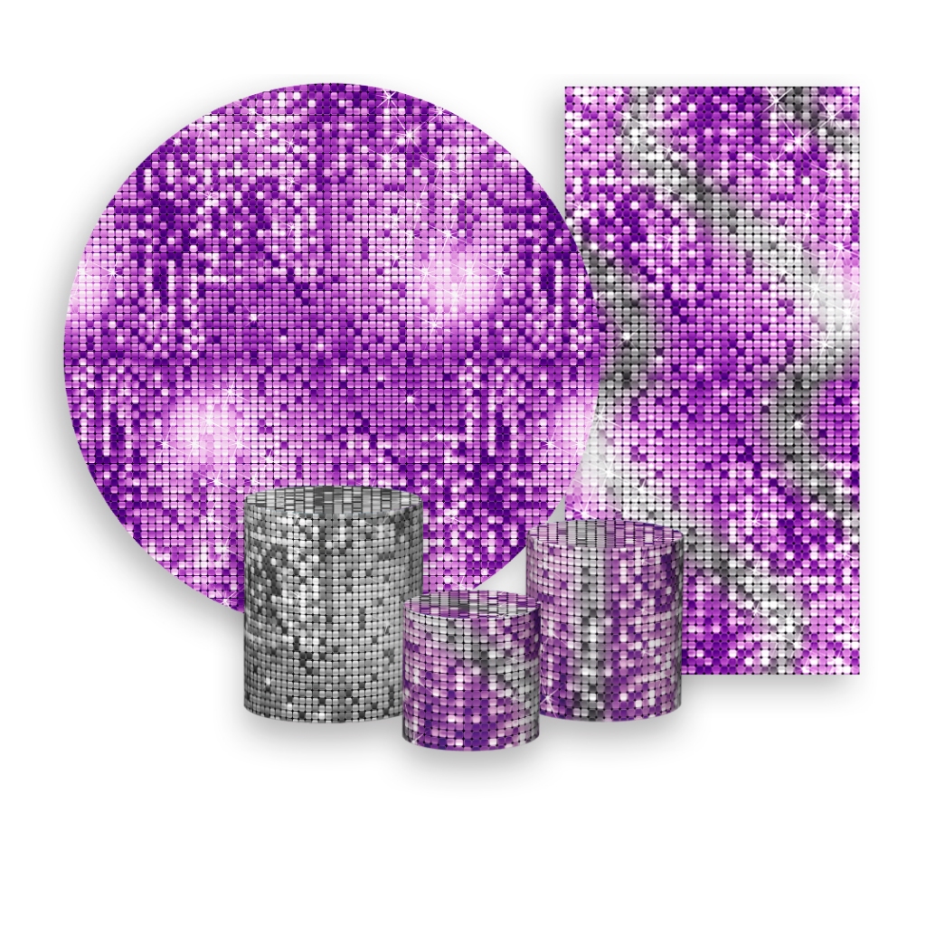 Painel De Festa Tecido 3D + Trio Capa Cilindro + Faixa Veste Fácil - Efeito Lantejoulas Roxo New Euphoria