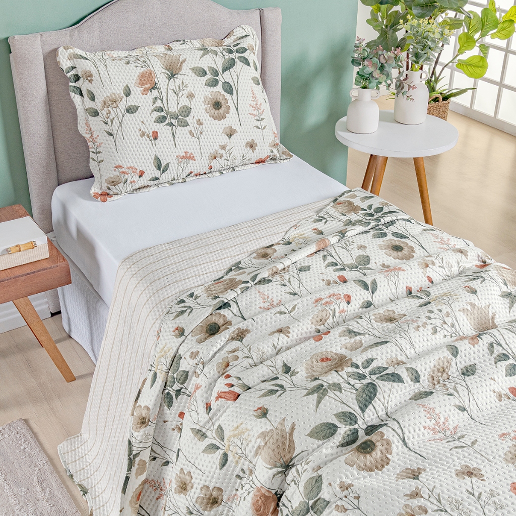 Kit Cobre Leito Colcha Solteiro Bouti 2 Peças Dupla Face Estampada Porta Travesseiro Aba Americana